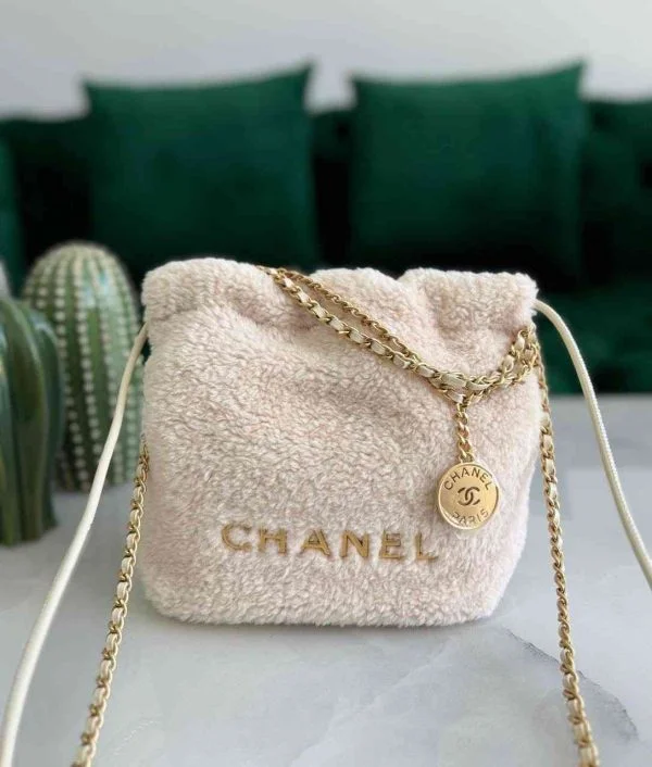 Chanel 22 Mini Shearling Handbag with Gold Tone Metal