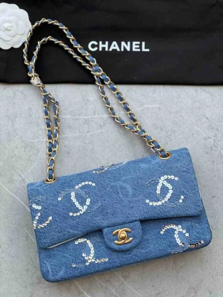 Chanel 23b Denim CC Sequined Double Flap Bag