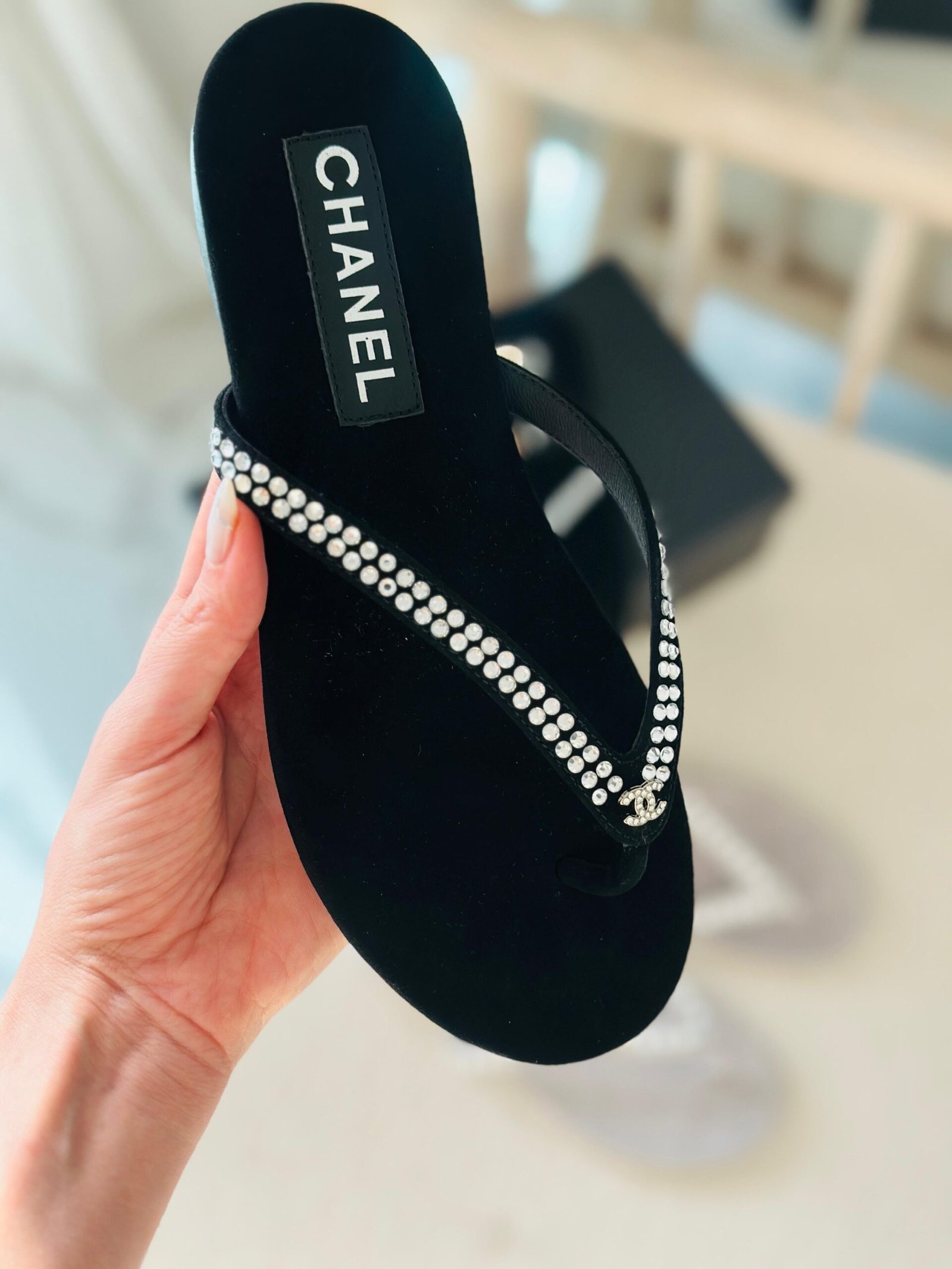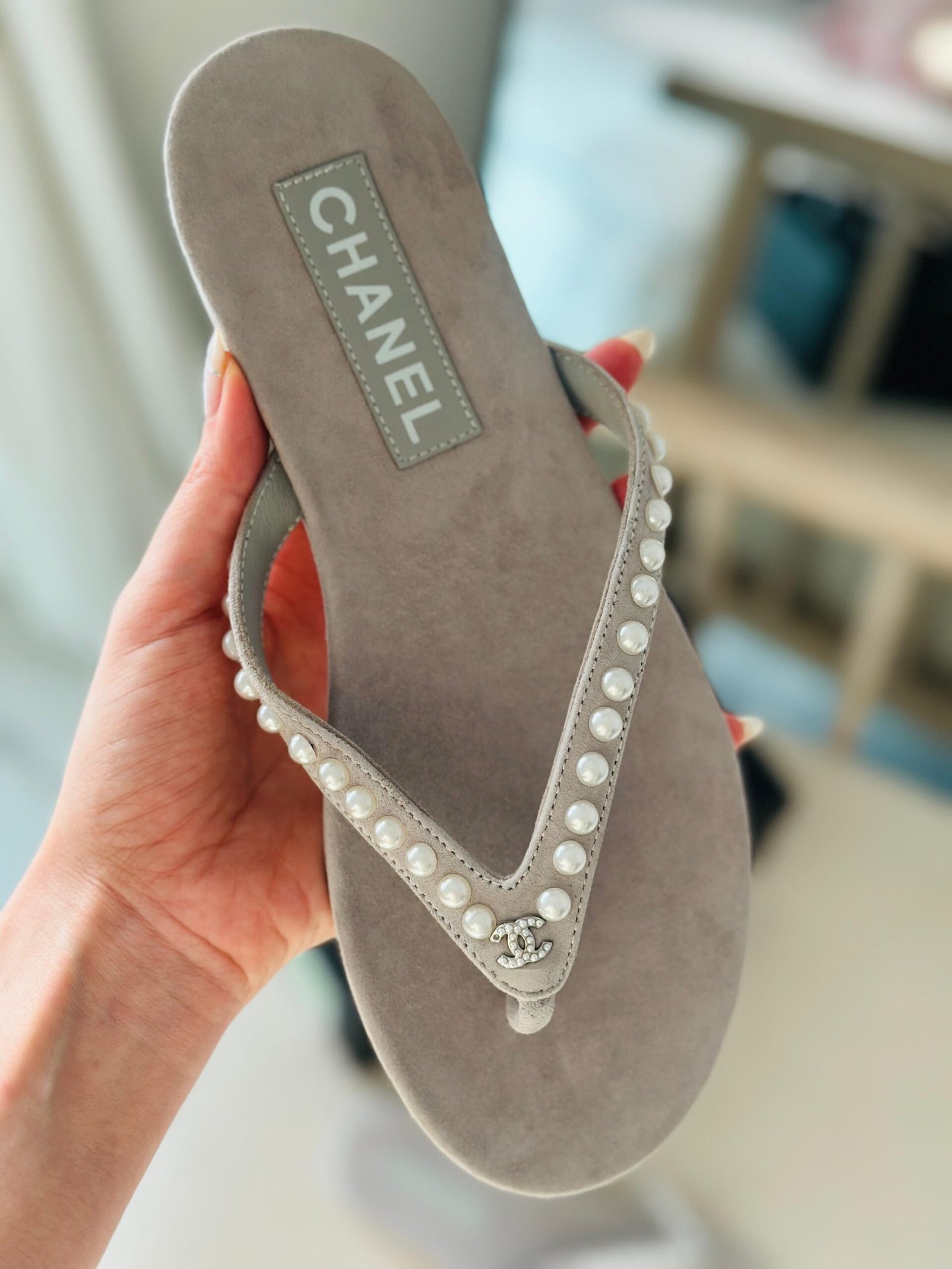 Be the first to review “Chanel Pearl Kids Thong Faux Suede Sandals”