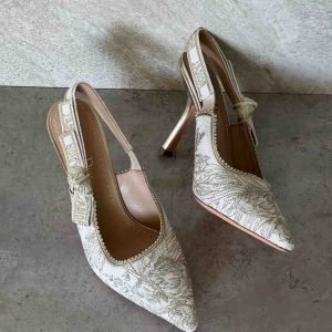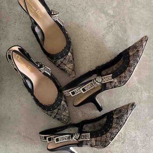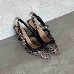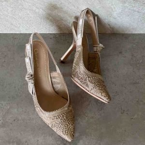 Size: 36-41 Cotton and Lambskin Goatskin lining Two-tone J’Adior embroidered cotton ribbon Flat bow 10-cm comma heel Low-cut upper with pinked edge Calfskin sole with star, Christian Dior’s lucky symbol Including full box and dust bag