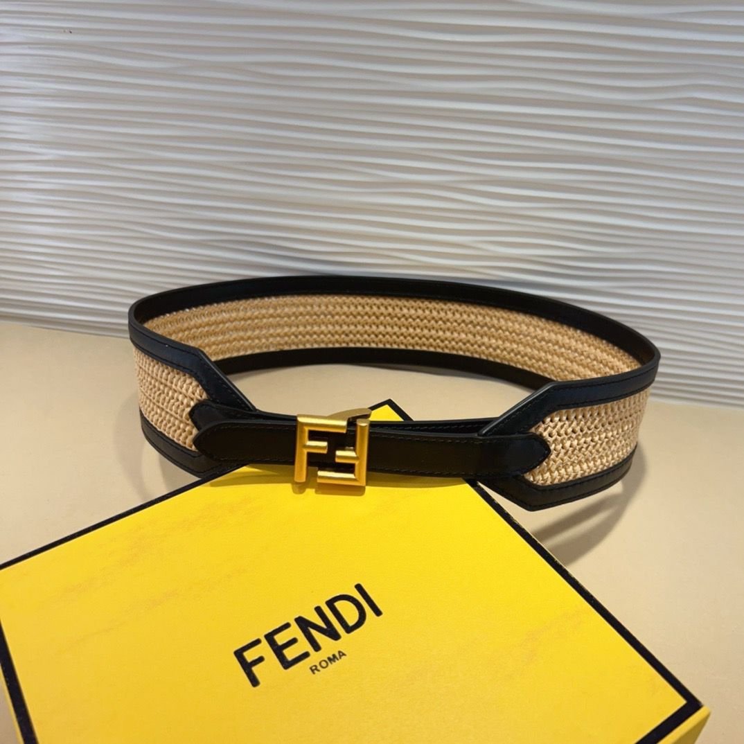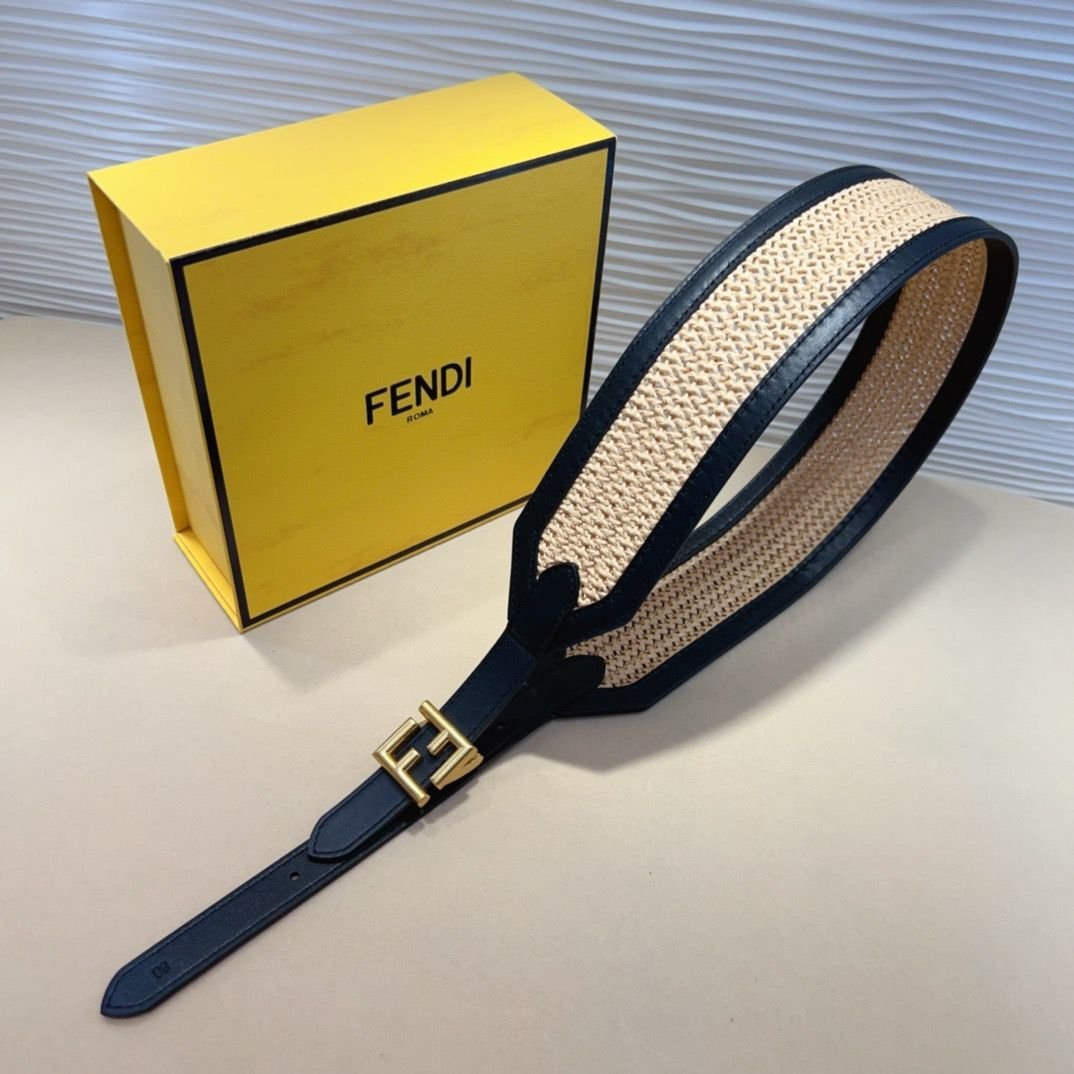Be the first to review “Fendi FF Logo Embossed Raffia Belt”