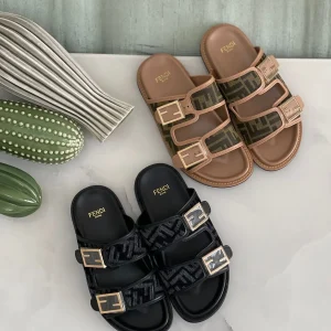 Be the first to review “Fendi Women’s Feel FF Dual Buckle Slides”