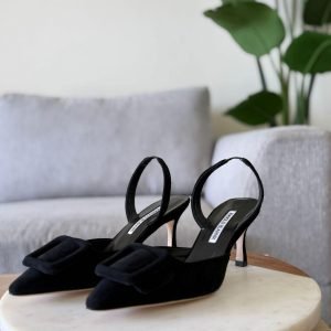 Be the first to review “Manolo Blahnik MAYSLI Black Suede Slingback Pumps”