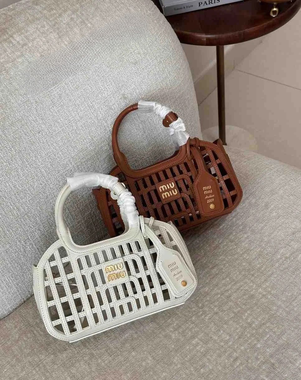 Miu Miu Leather Woven Basket Hand Bag