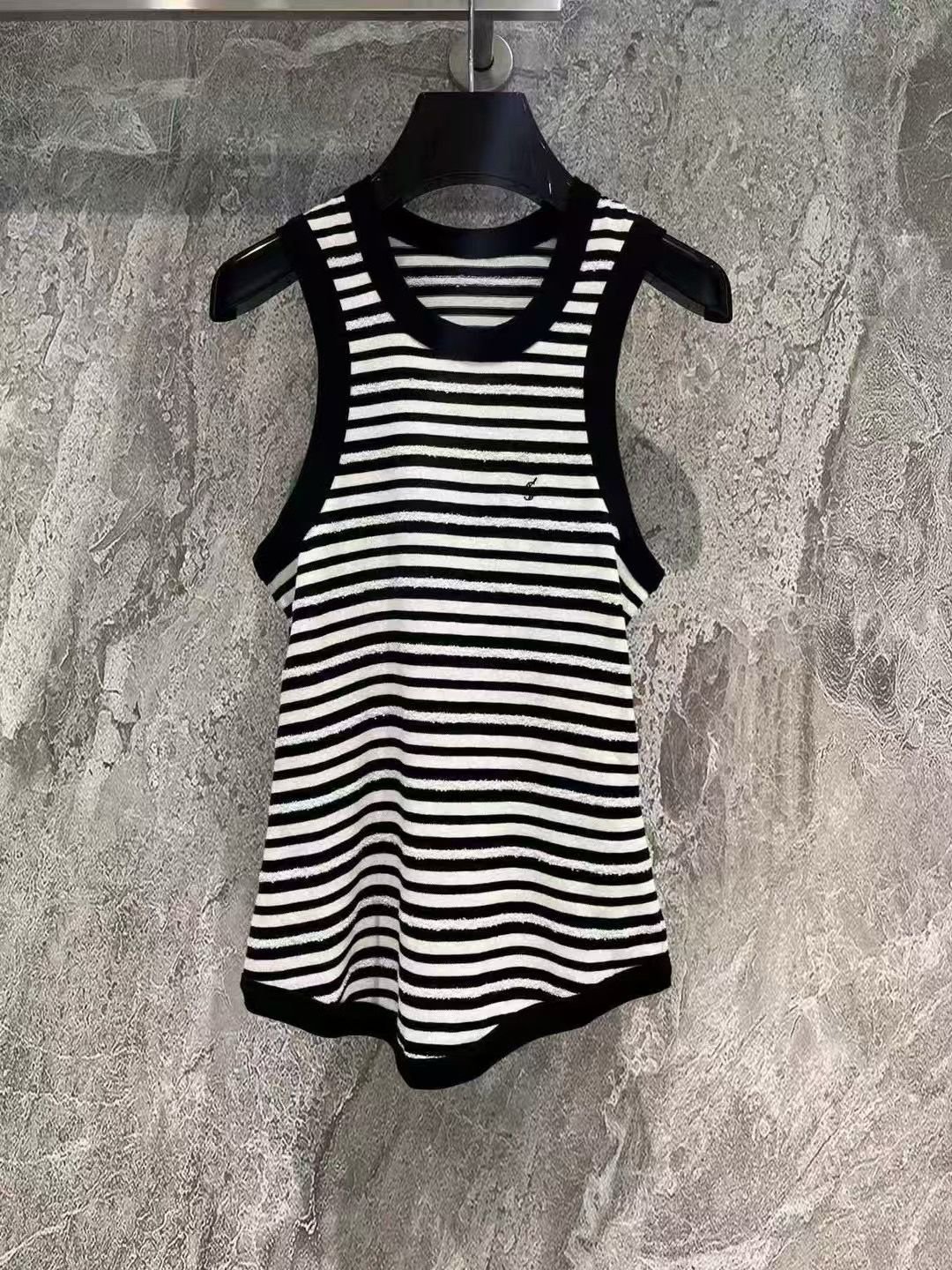 Be the first to review “SAINT LAURENT Monogram-embroidered Stripe Tank Top”