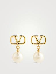 Valentino V Logo Pearls Pendant Necklace, Earrings